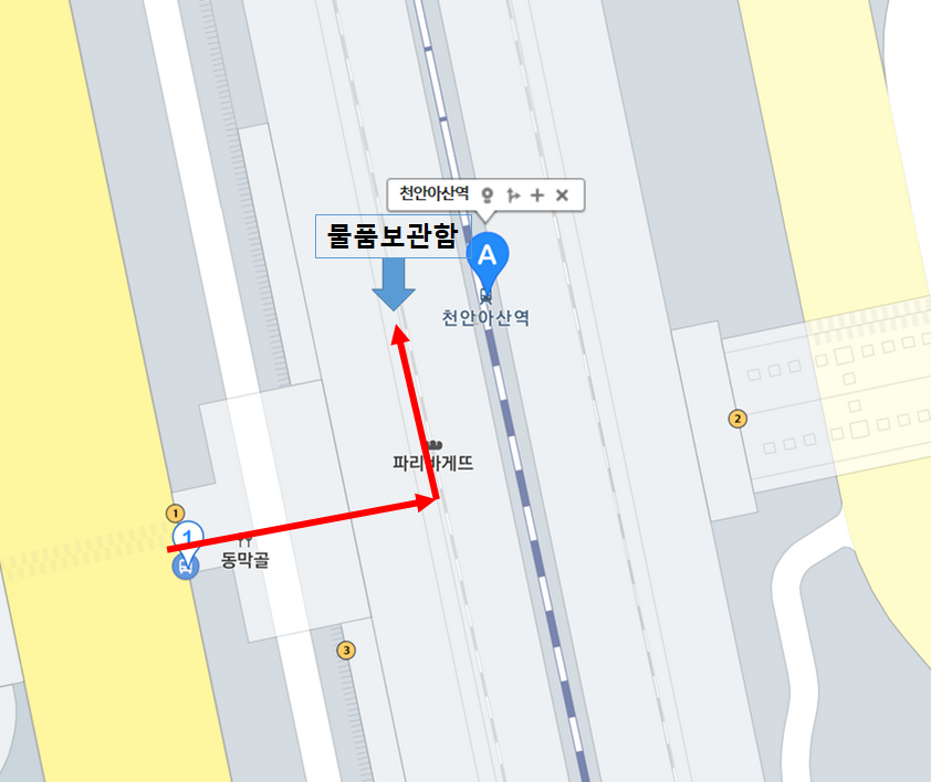 KTX 천안아산역 물품보관함은 1번 출구나 2번출구로 들어가셔서 파리바게뜨를 찾으시면 됩니다!