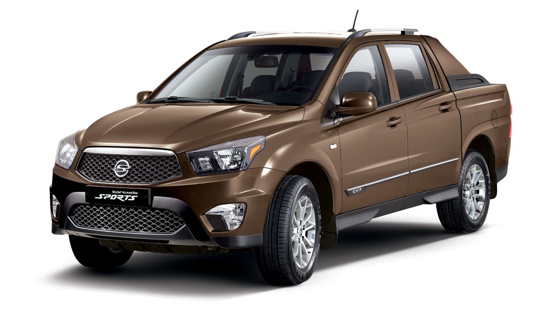 위 픽업트럭은 코란도 스포츠로, 정확히는 액티언 스포츠 후기형 모델로 생산되었던 자동차입니다. 픽업트럭이 아닌 SUV로 출시된 코란도 중에 이런 디자인을 가지고 있는 것은 없습니다.