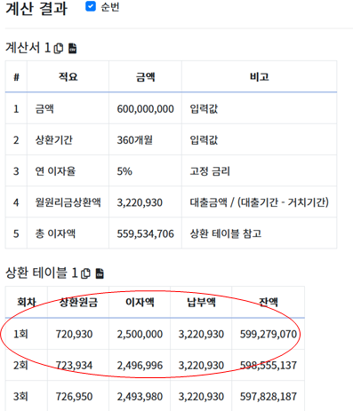 금리가 인상되면? 대출 금리는 당연히 오릅니다. 고정금리로 하신분들은 대출 원리금이 변하지 않겠지만, 변동금리로 대출을 받으신 분들은 대출 원리금이 변하게 됩니다. 대출 원리금이 더 늘어납니다. 아까 5%로 계산한 것보다 대출 원리금이 더 늘어나게 됩니다.