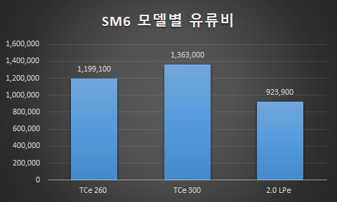 르노삼성의 대표 차량이자 중형 세단인 SM6 연료별 비용(유류비)을 비교해보자.