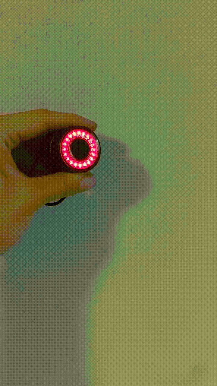락브로스 후미등의 가장 큰 특징이라 할 수 있는데요. 감속 센서가 장착되어 있어 위 사진처럼 흔들거나 주행 중 속도를 줄이면 빛의 세기가 강해집니다. 자동차가 브레이크를 밟을 때 후미등이 밝아지죠? 똑같은 효과입니다. 그래서 앞사람이 감속하는지를 쉽게 알 수 있어 안전합니다. 내가 감속한다는 걸 상대방에게도 쉽게 알릴 수 있구요.