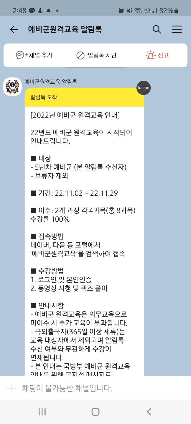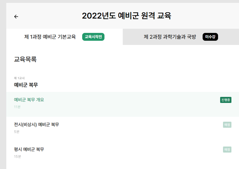 2022년 4~6년차 예비군 원격교육 수강 (안들으면 내년에 추가교육)