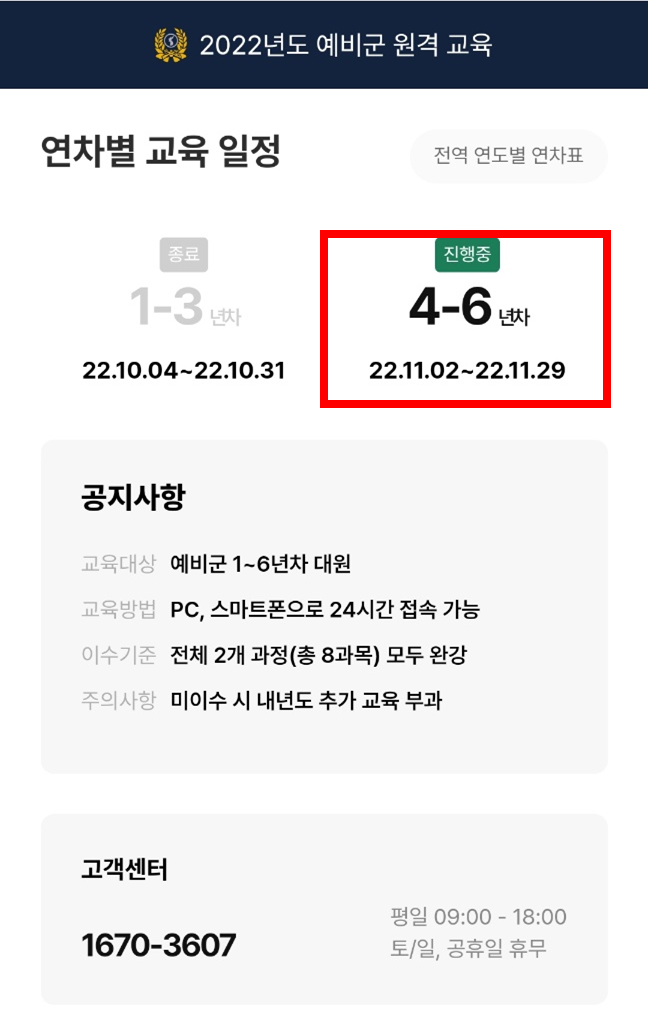 예비군 원격교육 대상 - 1 ~ 6년차 예비군