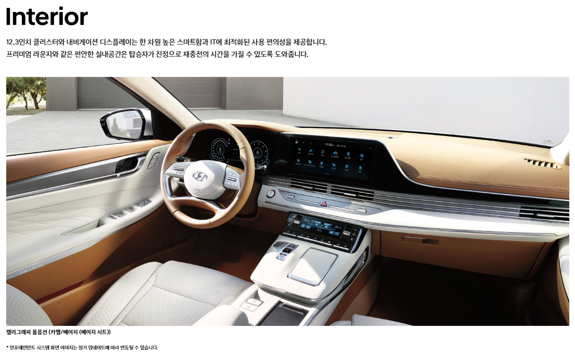 좀 더 자세한 사항은 현대 그랜저 하이브리드 카탈로그를 참고하시면 되겠습니다.