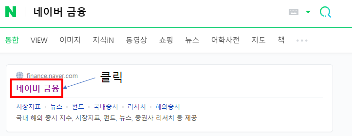 2. 가장 위에 있는 네이버 금융을 클릭한다.