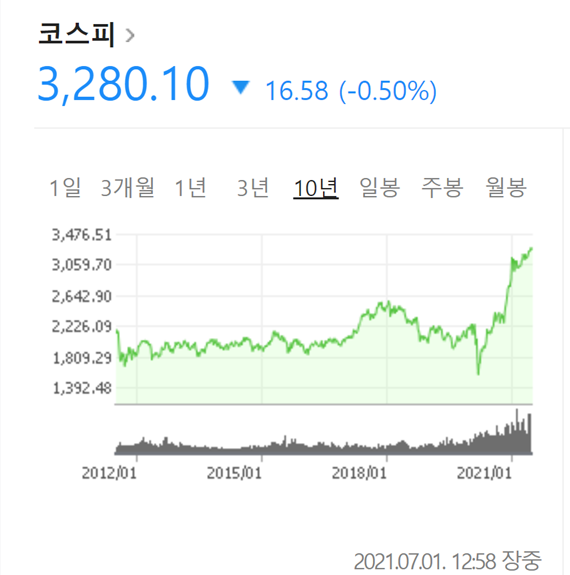 작년 코로나 사태이후(2020년 2월), 코스피 지수가 어느 정도 박스피에서 탈피한 모습을 보입니다. 초저금리 시대로 인해 투자에 관심이 몰리고 있고, 코로나 때문에 주식에 대한 관심이 더더욱 늘어난 듯 보입니다.