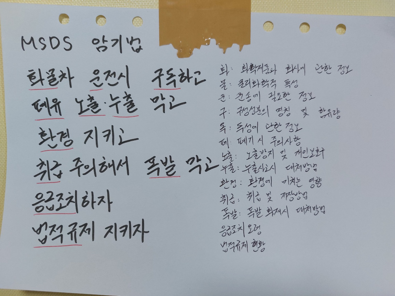 오늘은 소방기술사 시험에 간간히 출제되는 물질안전 보건자료 암기법을 공유하고자 합니다.