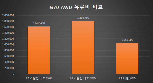 제네시스 G70 가솔린, 디젤 유류비 비교 - 후륜구동 모델