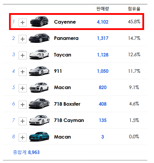 포르쉐 카이엔은 현재 포르쉐 중에서 가장 잘 팔리는 자동차입니다. 사람들이 포르쉐에서 제일 좋아하는 자동차이죠. 포르쉐인데다가 준대형 SUV이기 때문에 인기가 많을 수 밖에 없습니다.