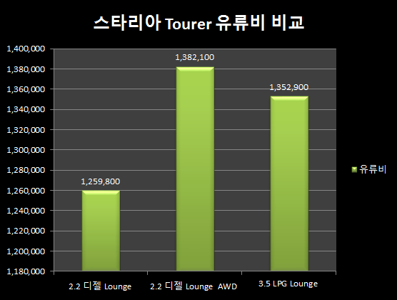 현대 스타리아 디젤, LPG 유류비 비교 - Lounge 모델