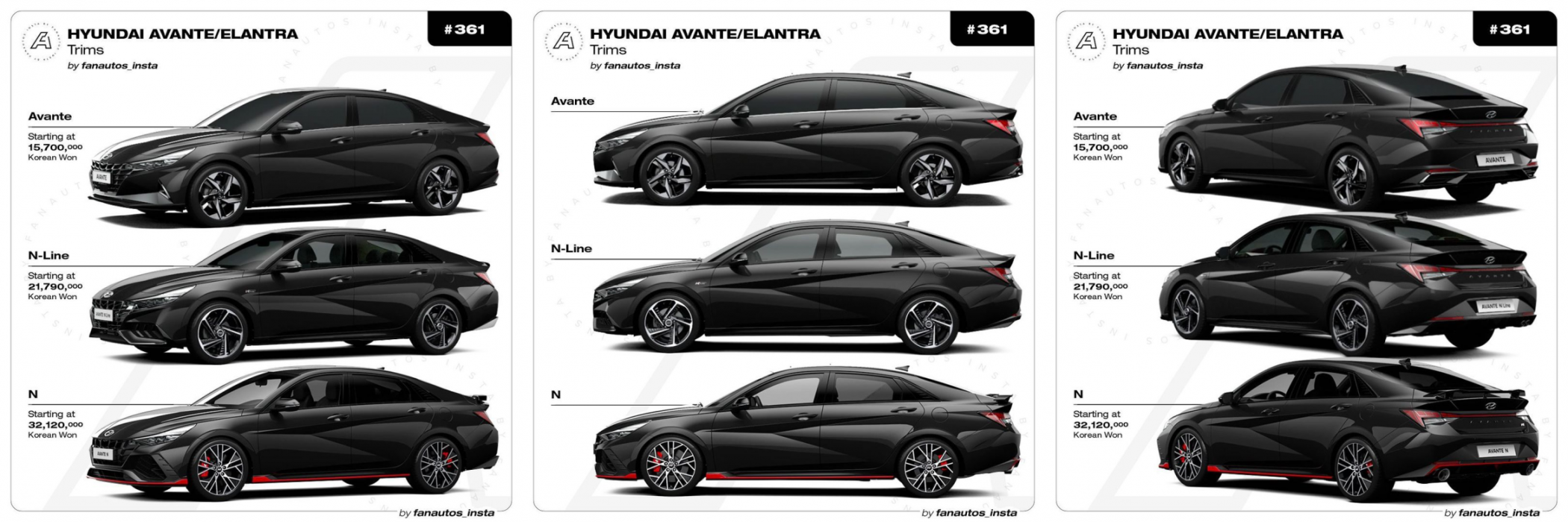 이번에 출시될 현대 아반떼 페이스리프트도 N, N Line, 하이브리드, LPG 등 파워트레인 구성은 동일할 것으로 보입니다. 코나 처럼 N Line을 옵션으로 추가해줄지는 공개되어야 알 수 있을 것 같습니다. 가격은 분명 전기형 아반떼보다 비쌀 것입니다. 원래 페이스리프트 출시하면서 가격은 거의 대부분 올라갑니다. 제원, 가격 등이 공개되면 아반떼와 준중형 세단을 비교하는 포스팅을 올리도록 하겠습니다.