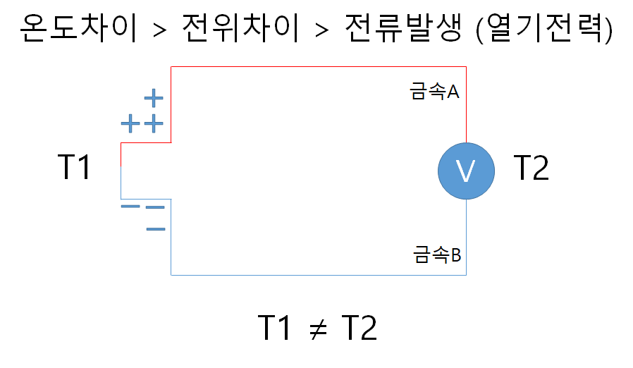 - 온도 차이 > 전위 차이 > 전류 발생 (열기전력)