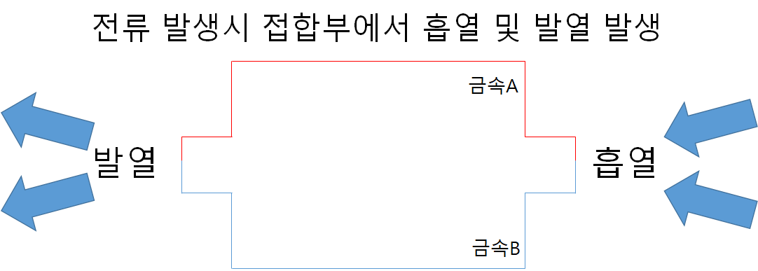 1) 정의: 열전대(Thermocoulpe)에 전류를 흘렸을 때, 열전대의 각 접점에서 발열 혹은 흡열 작용이 일어나는 현상