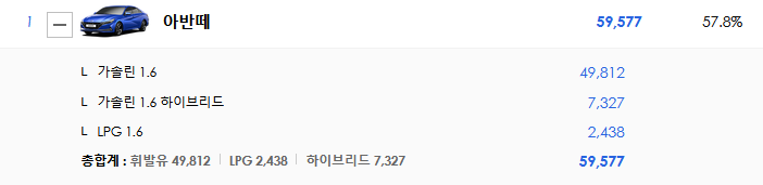 2023 현대 아반떼 페이스리프트 유류비 계산 - 가솔린, LPG, 하이브리드