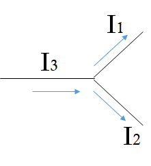 | - 평상시 (누설전류가 없을때) 키르히호프 제1법칙에 의해 $I_1$ = $I_2$ 들어오고 나가는 전류의 양이 같으므로 자속변화가 없어 감지부에서 전류가 생기지 않는다. (경보 없음) |