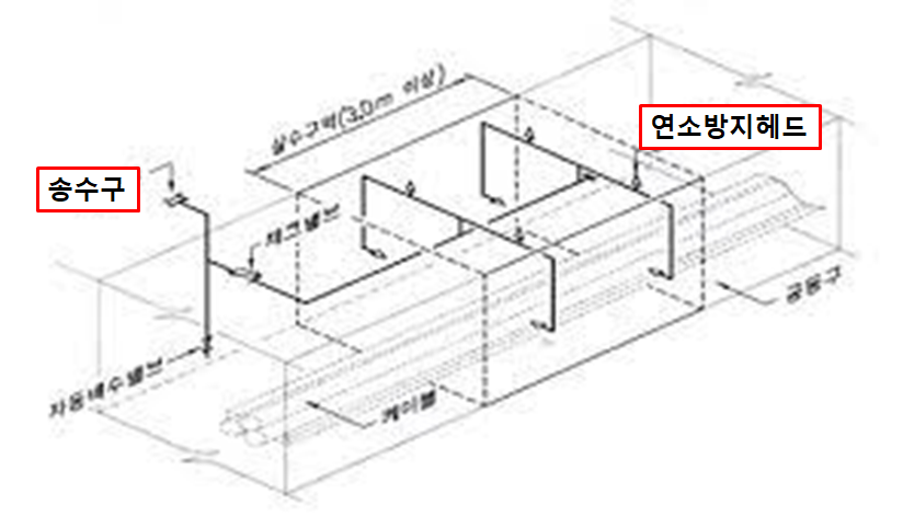 - 방화벽은 분기구 및 국사ㆍ변전소 등의 건축물과 지하구가 연결되는 부위(건축물로부터 20미터 이내)에 설치할 것