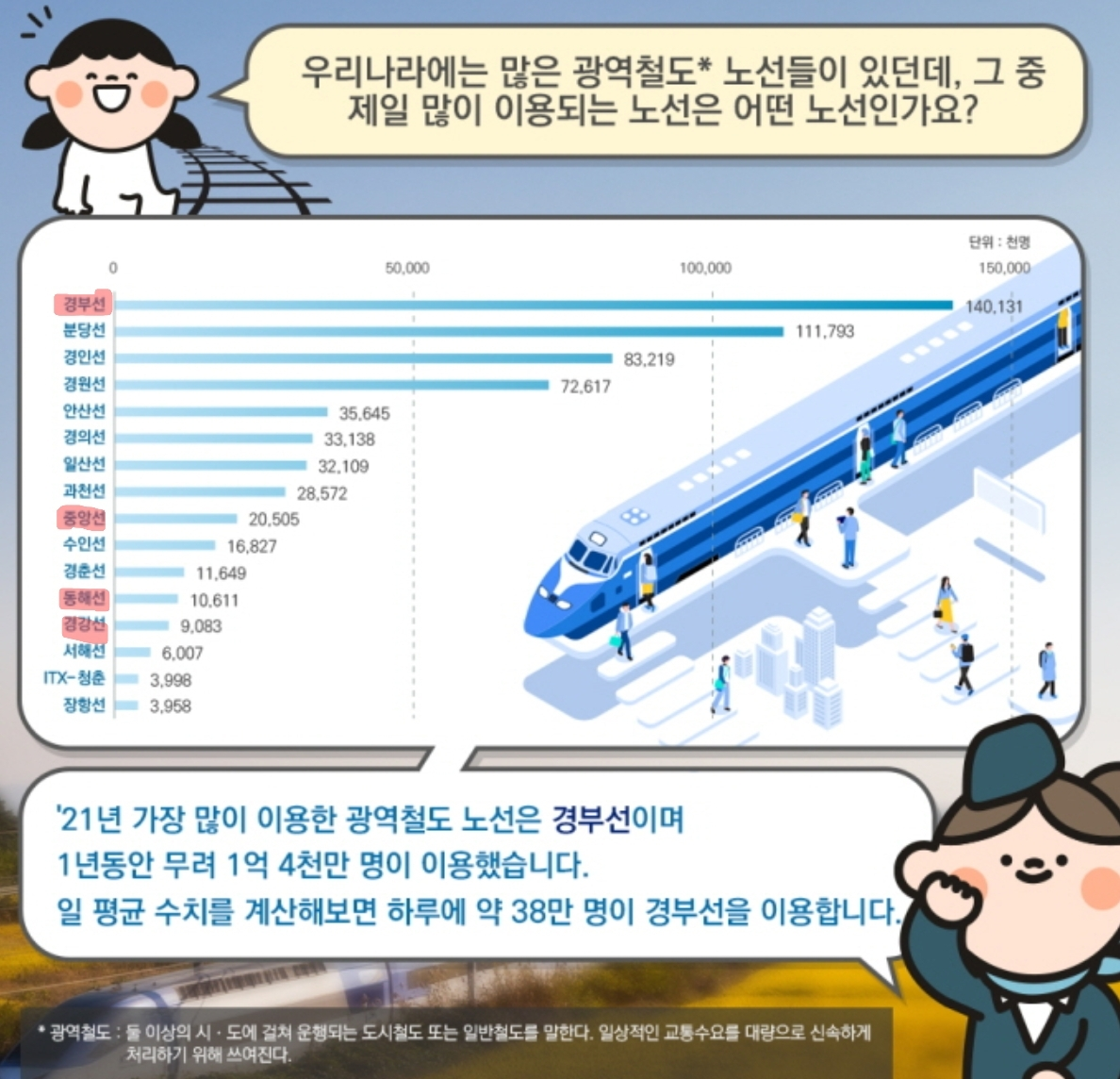 국내 철도선 정리 - 경부선, 중앙선, 호남선 등