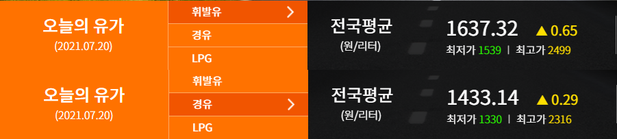 연료가격 기준은 2021.07.20 (출처: 한국석유공사 오피넷)