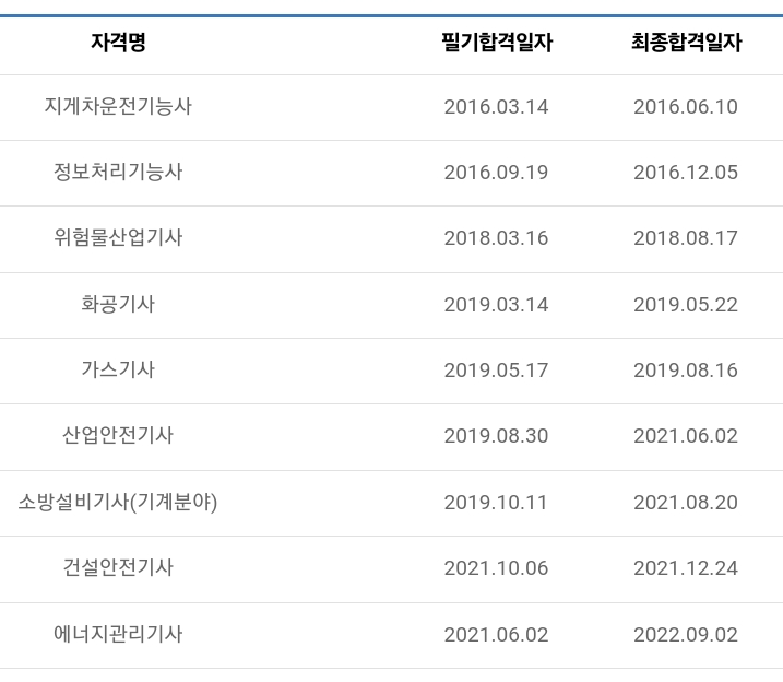 | 2021 | 3 (산업안전기사, 소방설비기사-기계,건설안전기사) |
