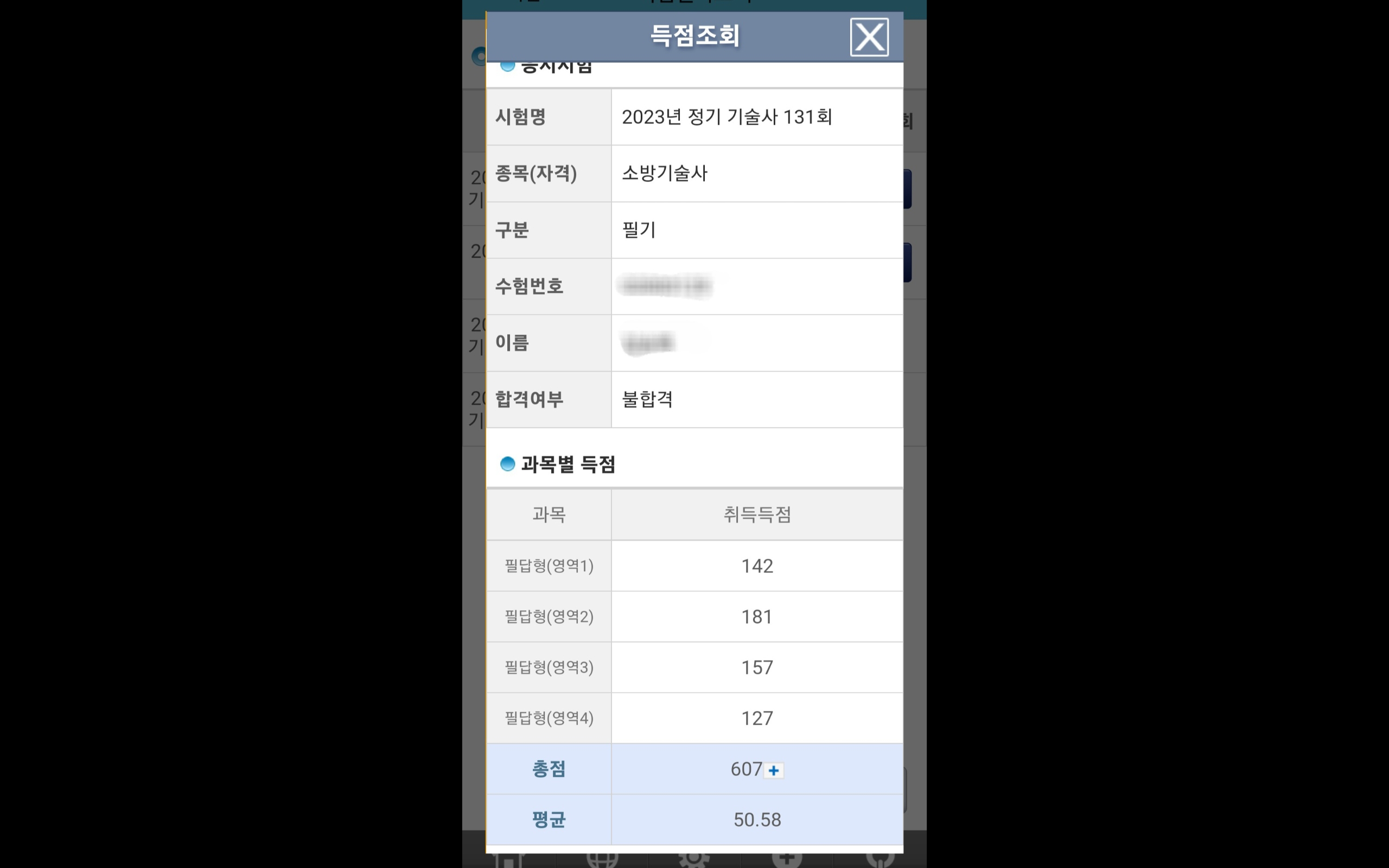 소방기술사 공부 약 1년째, 131회 시험응시 기준으로는 10개월째 50점을 받았다. 내가 50점을 받을 수 있구나라는 게 믿기지 않으면서도 좀만 더하면 합격으로 갈 수 있겠다는 가능성을 보았다. 기술사 시험에서 50점이 넘었다는 건, 운과 때가 맞으면 합격할 수 있다는 걸 말한다. 기술사 시험에서는 50점이 매우 의미있는 점수다.