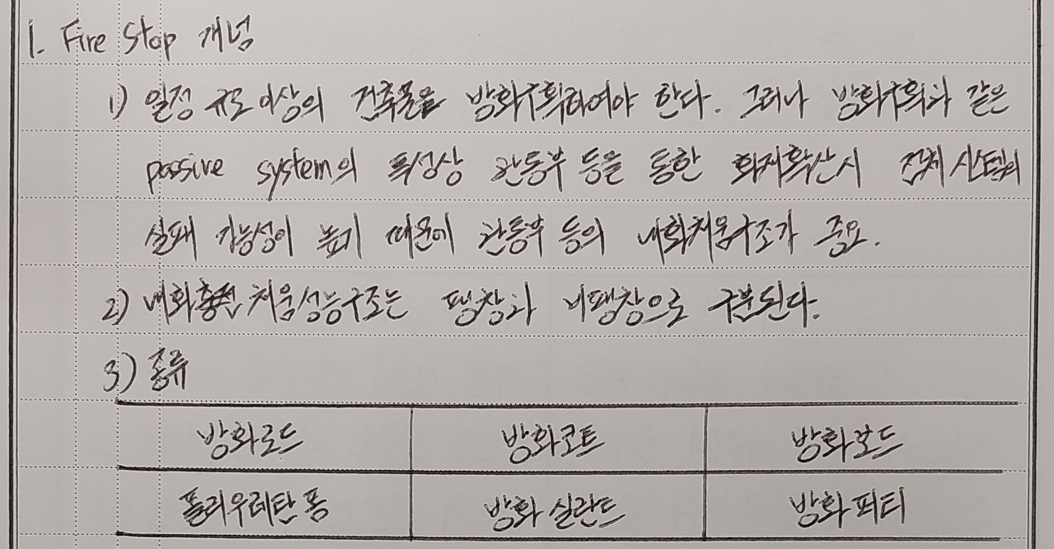 | [소방기술사] 방화벽 기준(건축물 구조 등의 규칙, 지하구의 화재안전성능기준) (0) | 2023.10.23 |