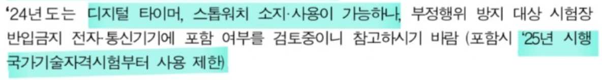 2. 24년 12월까지는 스톱워치, 디지털 타이머 허용 (25년도 허용이 될 수도 안될수도 있음)