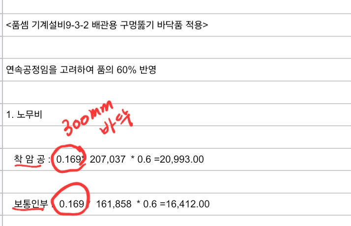 3. 품셈을 보고, '시공사에서 300mm 콘크리트 바닥으로 25mm 천공할때 품셈을 적용했구나!' 를 알 수 있다.