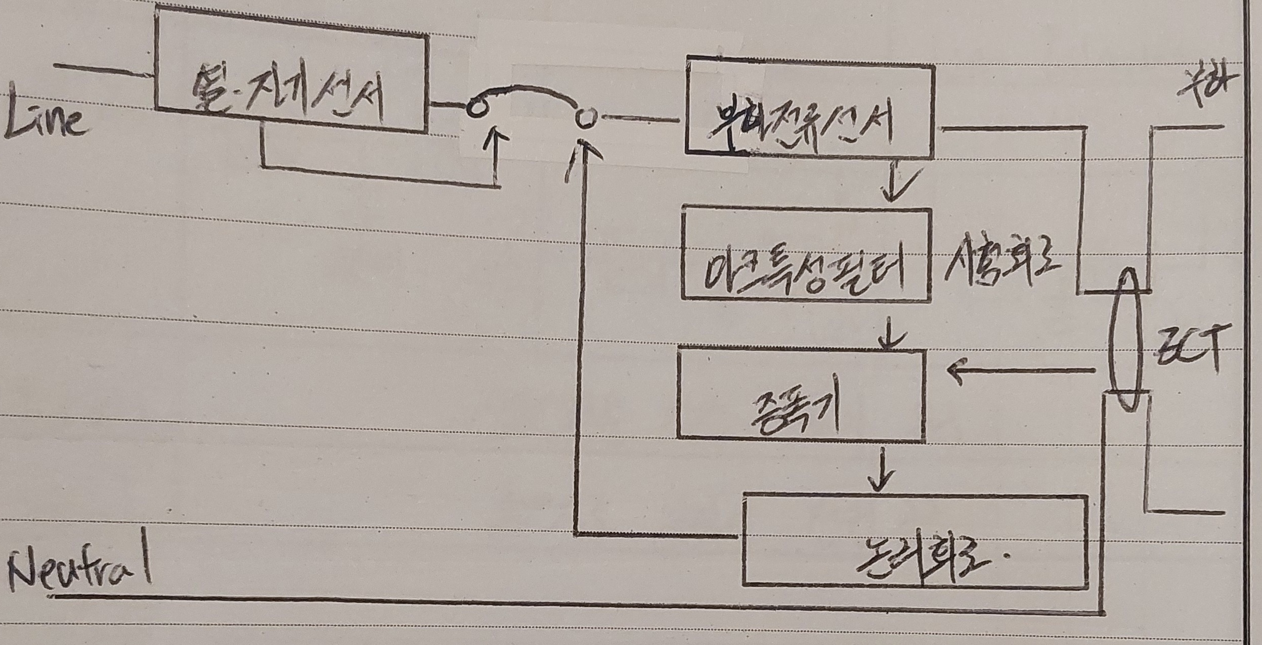 | 아크 발생 ↓ 노이즈와 아크 구분 (필터) ↓ 아크 신호 증폭 (증폭기) ↓ 논리회로 판단 ↓ 차단기 트립 |