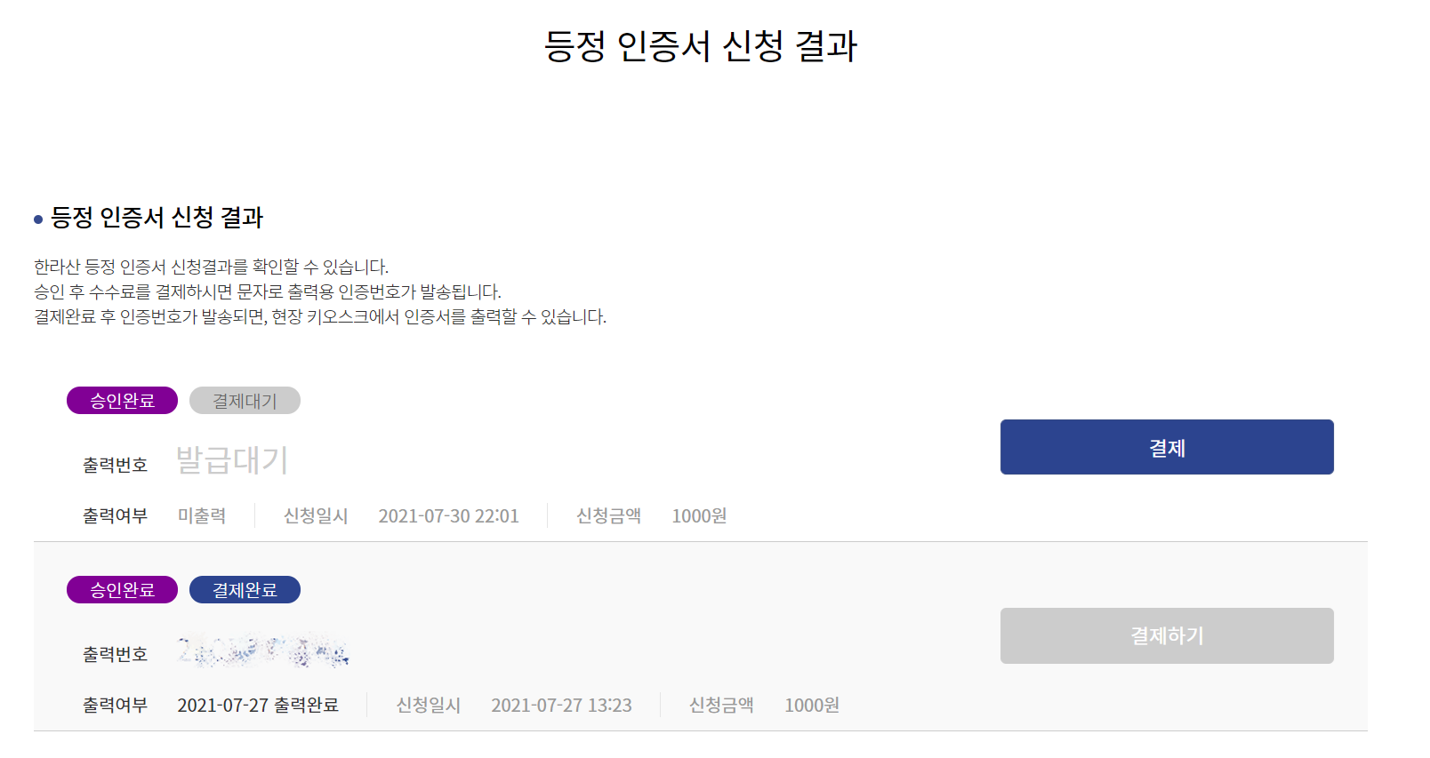 한라산등정인증서 발급방법