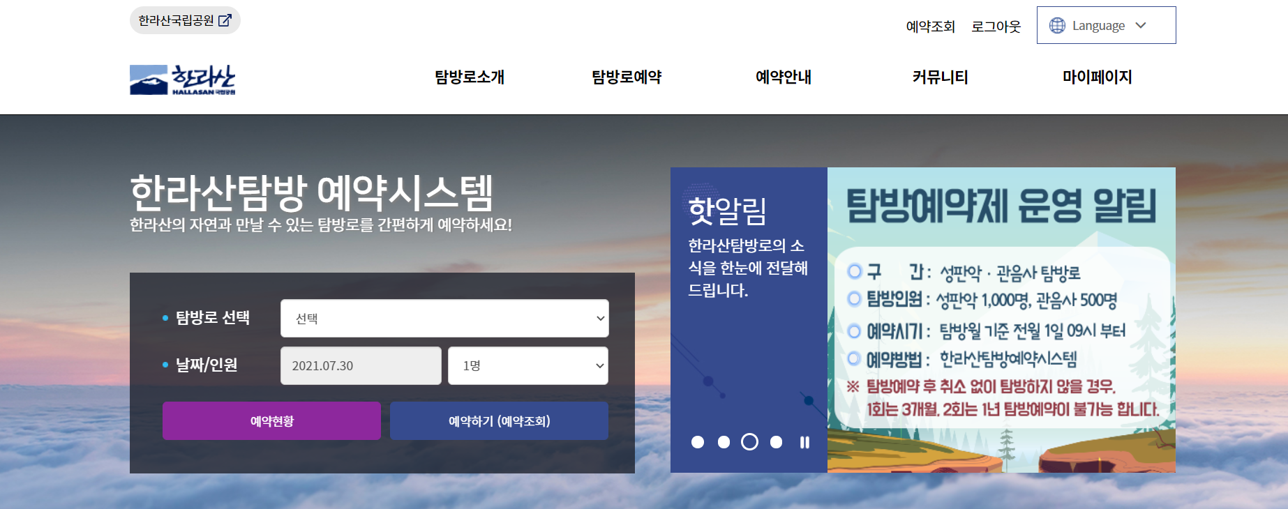 한라산탐방 예약시스템
