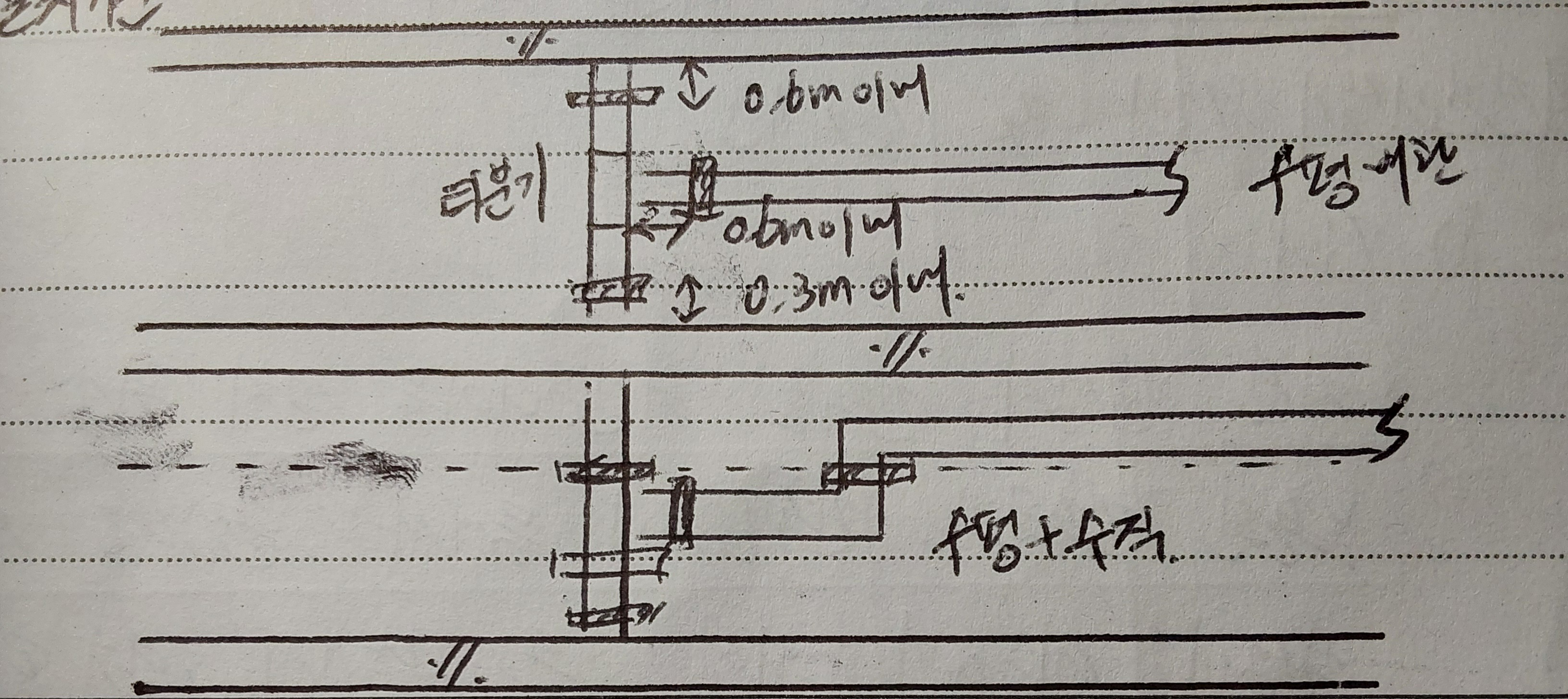 - 각 층의 바닥으로부터 0.3m, 천장으로부터 0.6m 이내