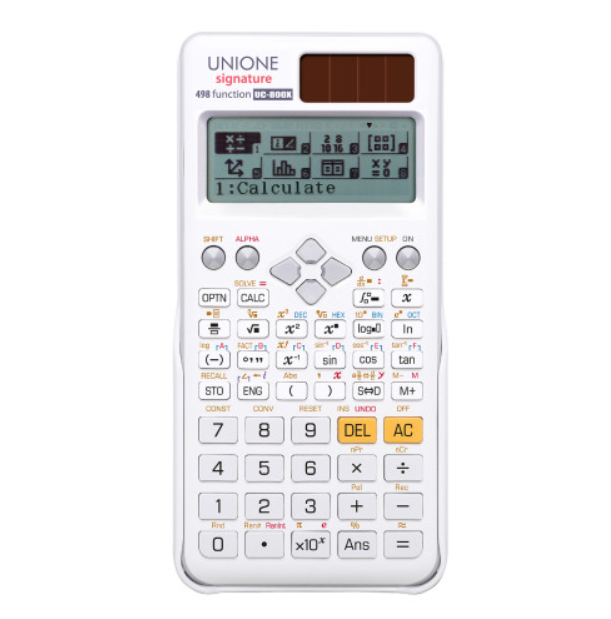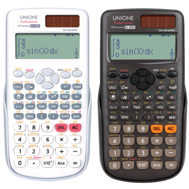 유니원사의 공학용 계산기의 경우 모두 태양광 충전이 가능하다는 점이 특징이다. 필자도 현재 예비용으로 시험때 가지고 다닌다.