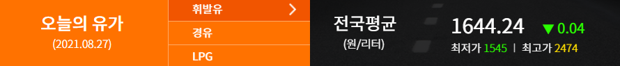 연료가격 기준은 2021.08.27 (출처: 한국석유공사 오피넷)
