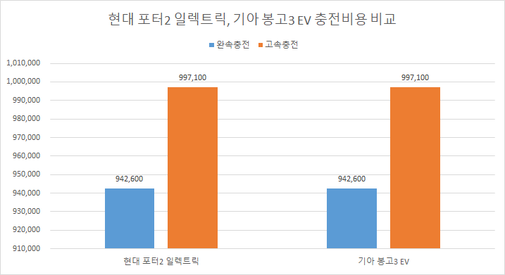 대한민국의 대표 트럭 양대산맥인 현대 포터2 일렉트릭, 기아 봉고3 EV의 충전 비용을 비교해보자.