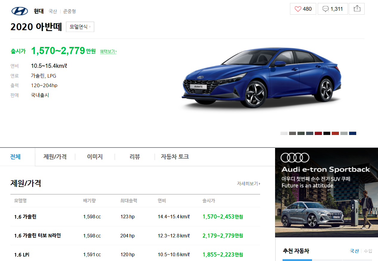 2020 아반떼 1.6 가솔린의 출시가가 1,570만원(옵션 없음)이라면 출고가는 얼마일까?