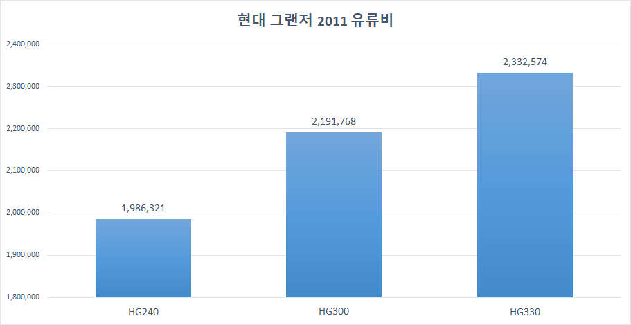 | 1년치 유류비 | 1,986,321원 | 2,191,768원 | 2,332,574원 |