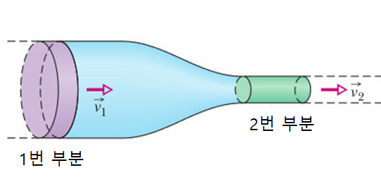 1번 부분의 단위시간당 질량유량 = 2번 부분의 단위시간당 질량유량