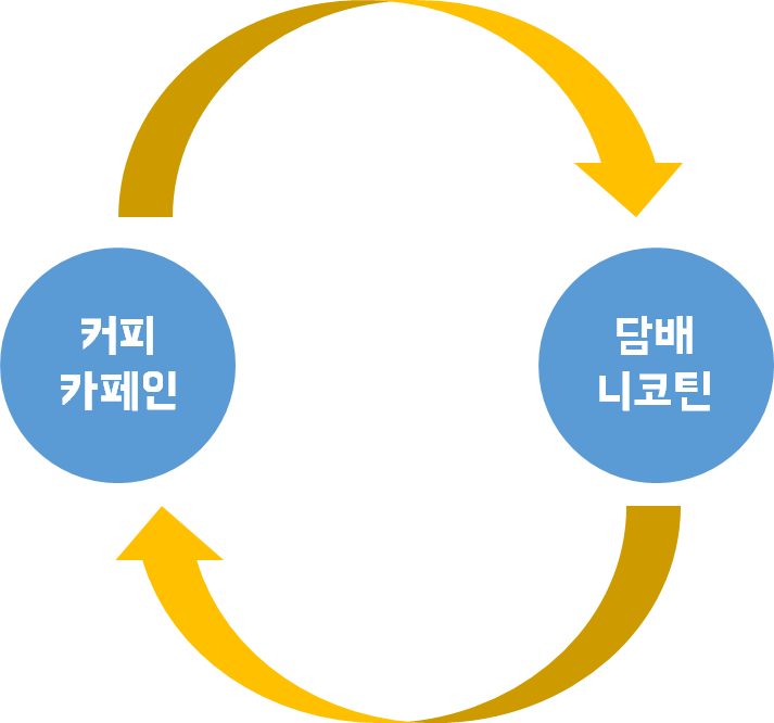 니코틴과 카페인간의 상호작용때문에 담배필 때 커피를 마시게 된다고 합니다.