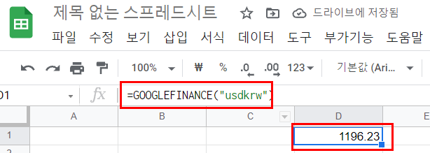 = googlefinance("usdkrw")