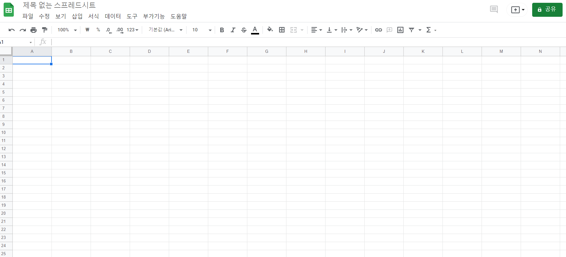 위 사진은 구글 스프레드시트 첫 화면입니다. 엑셀과 거의 다를 게 없죠?