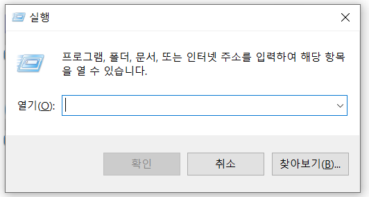1. Window + R 키를 동시에 누른다.