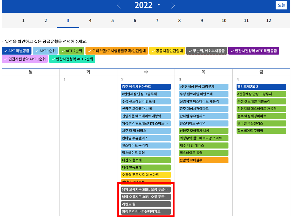 위 그림처럼 회색으로 된 블록이 무순위 청약입니다.