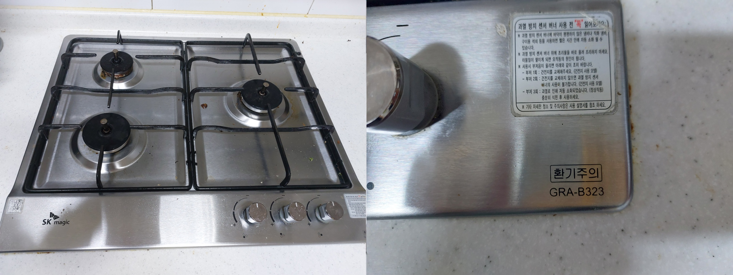 가스레인지(쿡탑) 종류는 SK 매직 GRA-B323KD입니다.