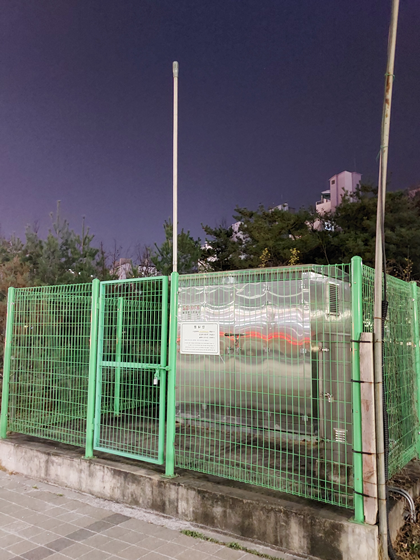 지역정압기의 경우에는 아파트 단지에서도 쉽게 볼 수 있습니다. 위 사진처럼 작은 창고같은 곳에 설치되어 있습니다. 특징으로는 지붕위로 노란색의 긴 관이 길게 뻗어있습니다.