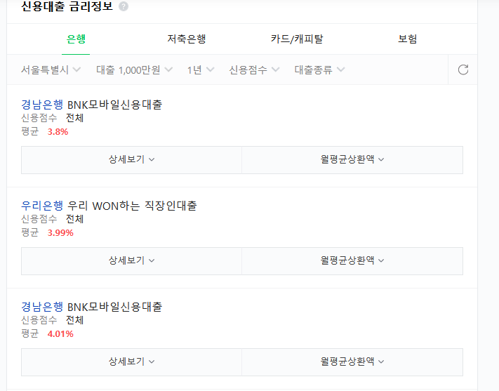 신용대출 금리정보를 비교해보면 4% 수준이군요. 우리은행 신용대출을 자세히 보겠습니다.
