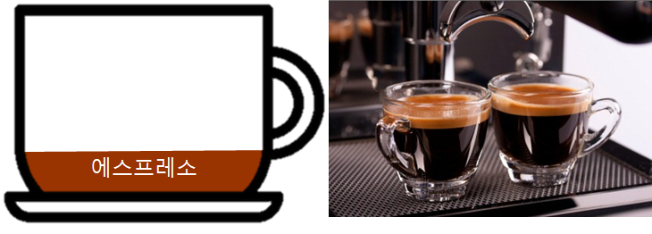 우리가 주로 마시는 커피는 에스프레소를 기본으로 어떤 걸 섞느냐에 따라 종류가 달라집니다.