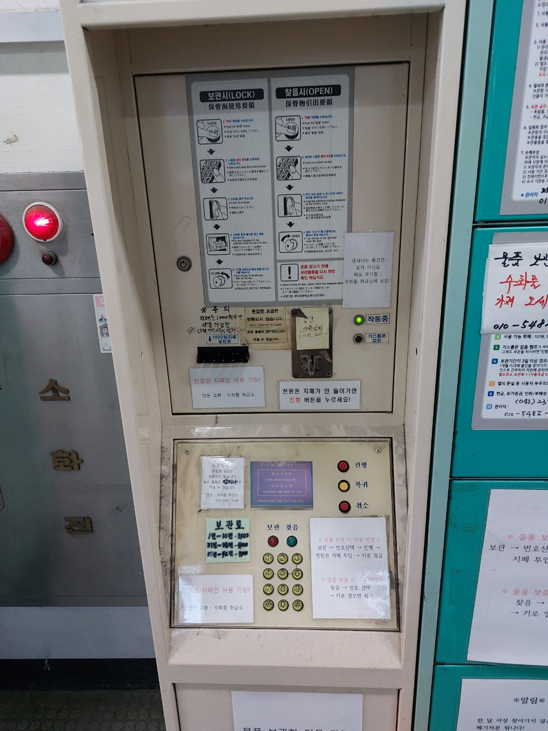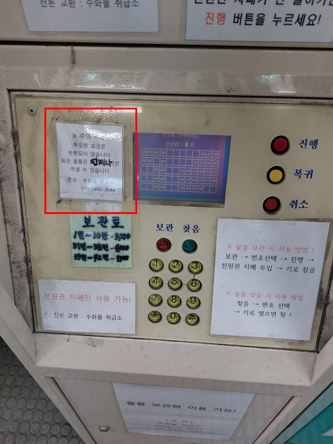 우선 청주시외버스터미널에는 물품보관함이 있습니다. 다만 좀 옛날 물품보관함이라 요즘 지하철역에 있는 물품보관함하고는 사용법이 조금 다릅니다.