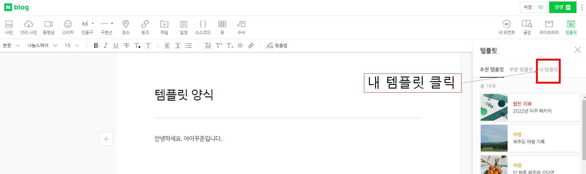 네이버 블로그의 장점은 바로 템플릿 기능입니다.