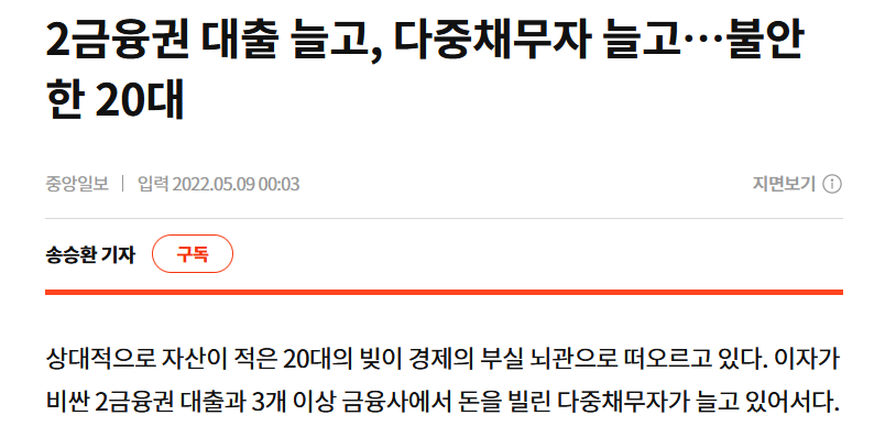 오늘 기사에서 다중채무자라는 단어를 보았습니다.