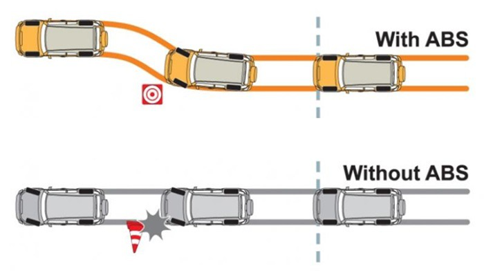 ABS덕분에 운전자가 브레이크를 계속 밟고 있어도 자동차가 미끄러지지않고 방향 전환도 할 수 있게 됩니다.